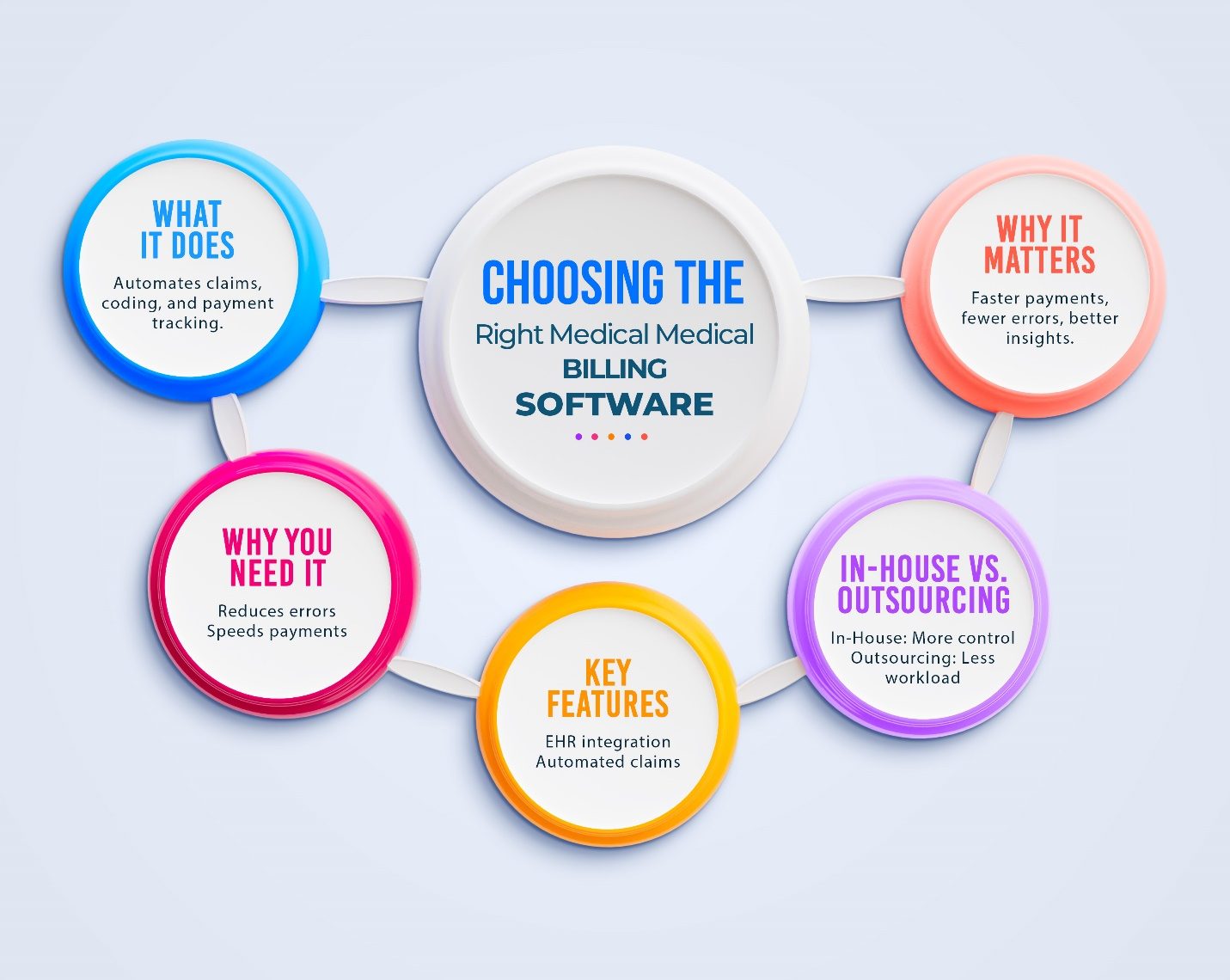 Physicians will have to weigh the advantages and disadvantages of handling in-house billing software against those of outsourcing medical billing services or companies.