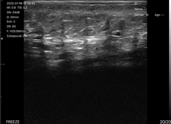 The images show the skin and subcutaneous tissue in ultrasound mode.